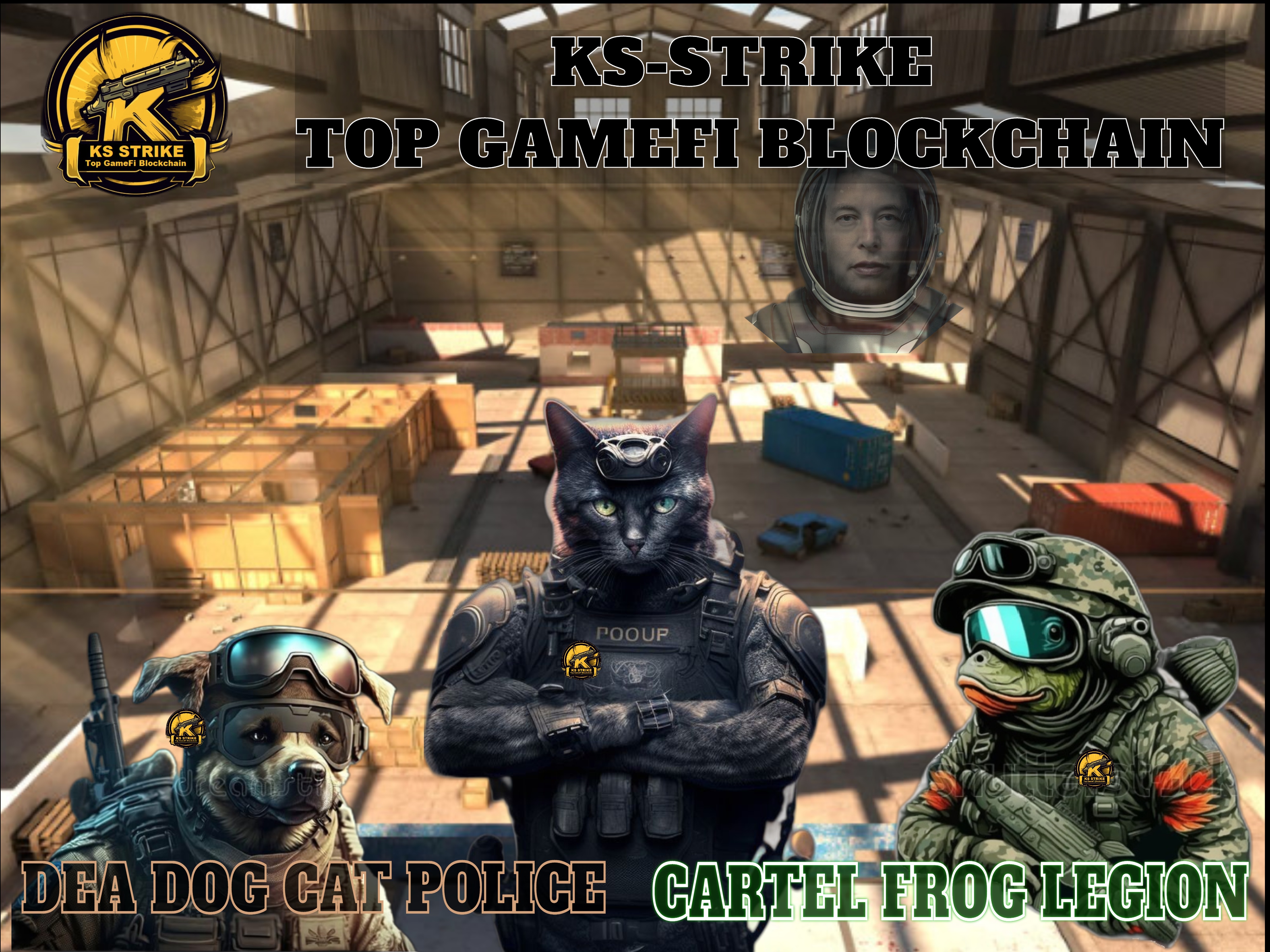 **KS Strike is an NFT Play-To-Earn game that revolves around fierce gunfights in the alleys and corners of Colombia between the notorious drug Cartel Cat Legion  and the elite DEA Dog Police . The game recreates the bloody shootouts in crowded streets, alleys, and warehouses. DEA Dog Police is a volunteer police force that has been fighting crime since, protecting the people and preserving the history and culture of the city. However, as the city became more crowded, the profit from drug trafficking turned  into a powerful Cartel Cat  drug empire.**